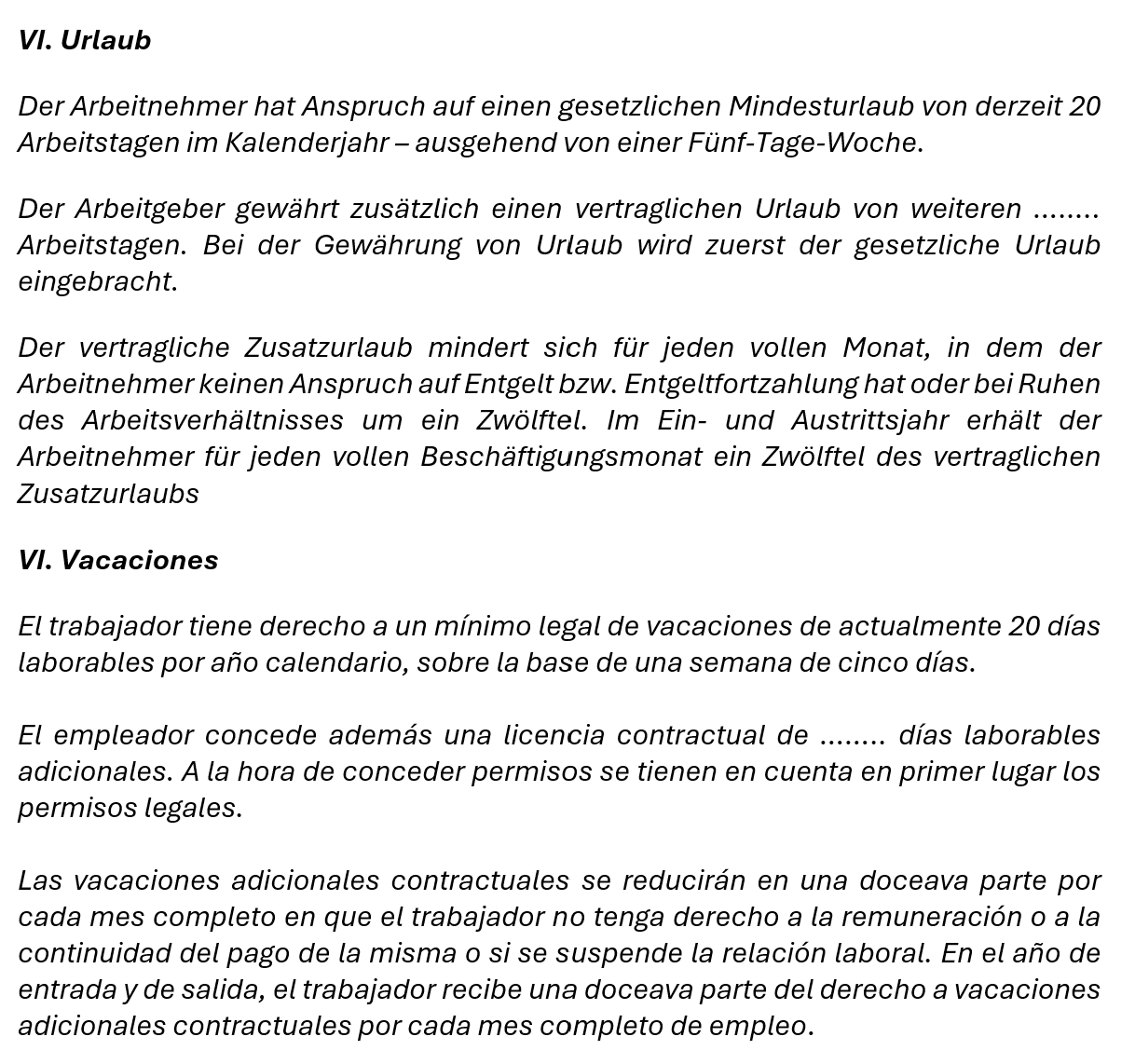 Concediéndole el beneficio de la duda, me planteé si realmente esta herramienta era tan eficiente como se prometía, y me lancé a probarla, abierta a desmontar todos mis prejuicios. Tomé una plantilla de contrato temporal de la Cámara de Industria y Comercio alemana (IHK) (que encontraréis aquí) y la traduje al español.